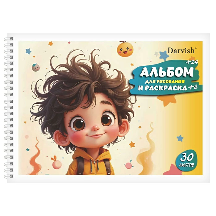 Альбом для рисования 24л + 6л раскраска "Весёлый мальчик" на гребне