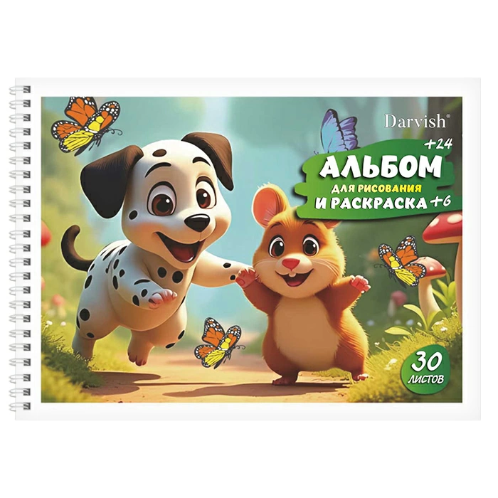 Количество листов - 30 ( сначала идут раскраски - 6 листов, затем альбомные листы - 24 листа).