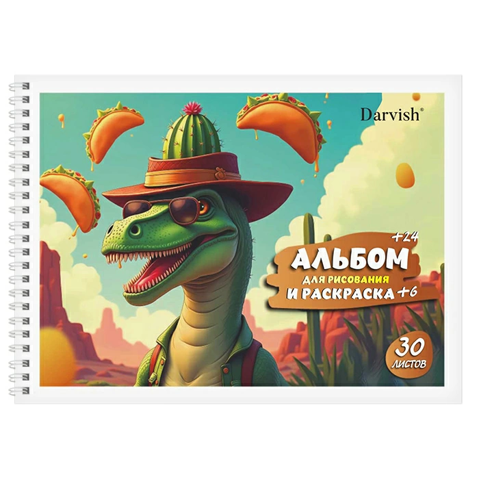Альбом для рисования 24л + 6л раскраска "Забавный динозавр" на гребне