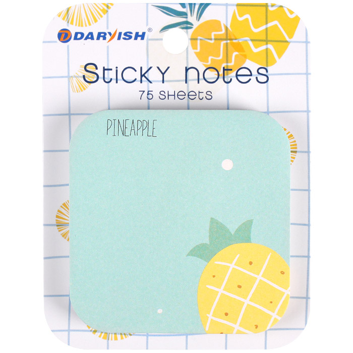 Стикеры на клейкой основе Квадрат с ананасом 70*70мм , количество листов-75, офсет. Ассорти. Упаковка - п/э на европодвесе 9*11см.
