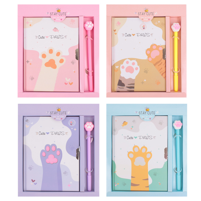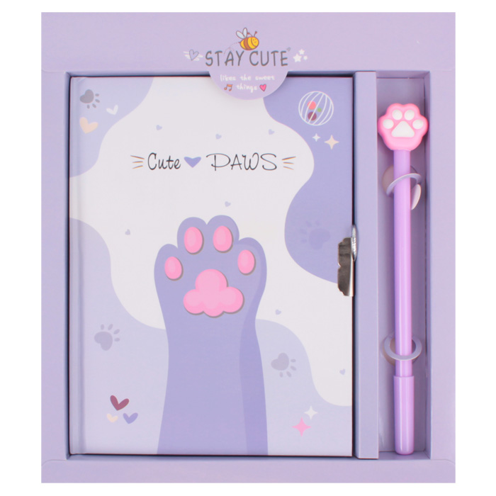 Блокнот A5 50л "Милые лапки" с ручкой гелевой синей