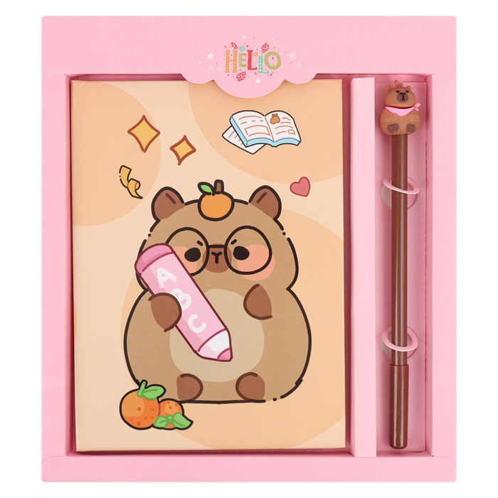 Блокнот 13*18см 50л в клетку + ручка "Капибара"