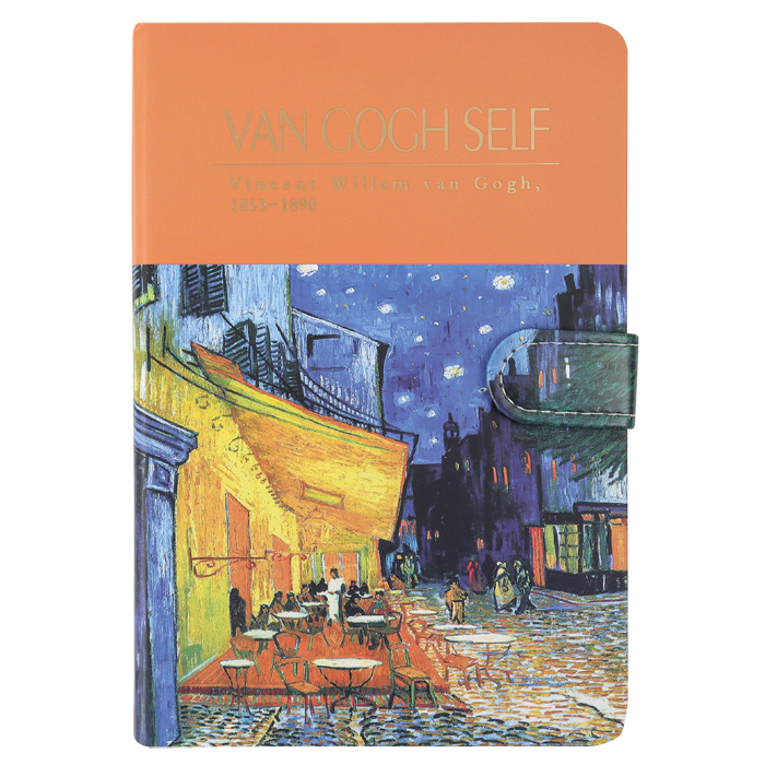 Блокнот на магнитной застежке с цветным срезом 13*19см. Закладка-ляссе. Офсет, 112л в линейку. Плотность не менее 100г/м2. Изображение с картины Винсент ван Гога "Ночная терраса кафе" 1888г. Упаковка: плёнка.