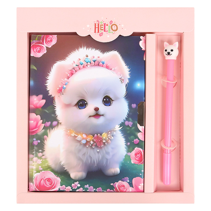 Блокнот 13,5*18 см 50л с замком "Собачка-принцесса" с ручкой