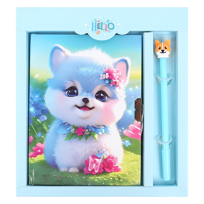 Блокнот 13,5*18 см 50л с замком "Собачка с цветами" с ручкой