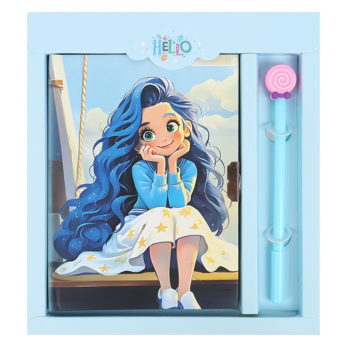Блокнот 13,5*18 см 50л с замком "Девочка с синими волосами" с ручкой