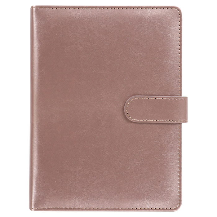 Ежедневник недатированный , размер:17,5*23см , обложка -кожзам , на кольцах и магнитной застёжке, внутри с дополнительными карманами количество листов -100, графление-линейка, размер внутреннего блока -14*21см. Цвет: розовое золото.Упаковка: мешок текстиль