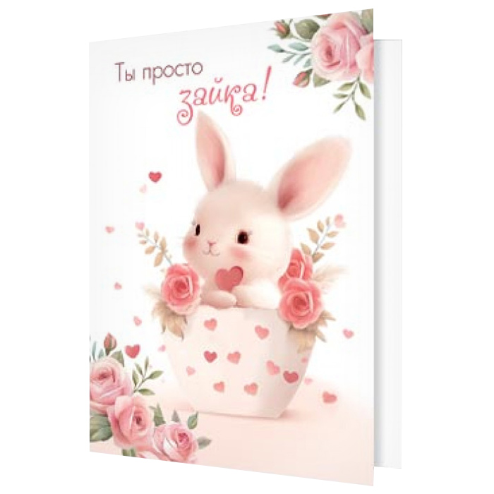 Двойная мини-открытка "Ты просто зайка!" (валентинка)