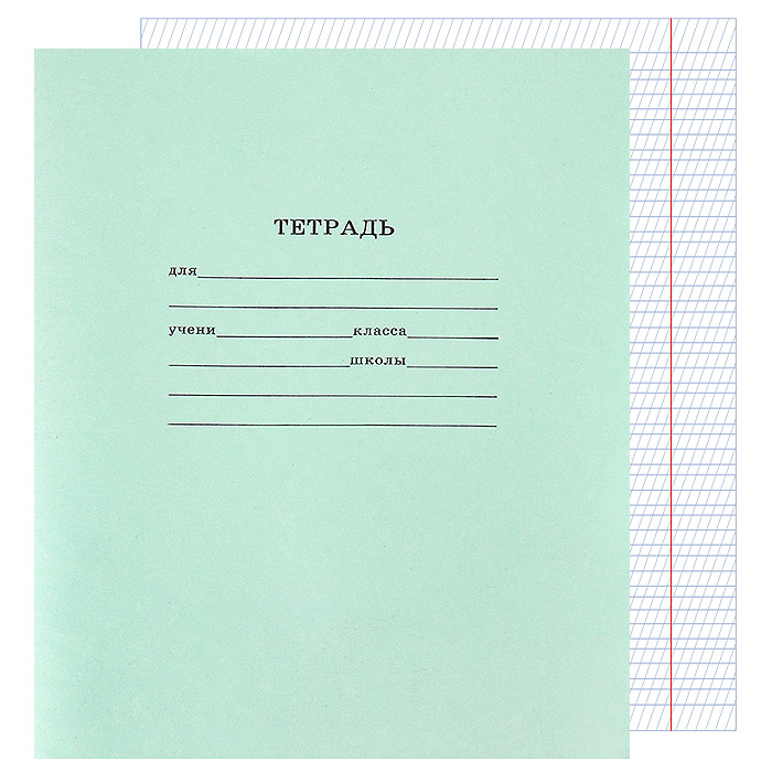 Тетрадь школьная в стандартной зелёной обложке с линовкой в частую косую линию 12 листов изготавливается компанией "Проф-Пресс" в формате А5. Крепление: на скрепке.