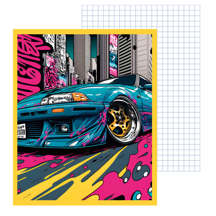 Тетрадь формата А5 48 листов представляет собой отличное решение для записей, заметок.Эта тетрадь имеет клетчатую линовку, которая обеспечивает удобство и порядок при письме.На обложке изображены спортивные машины.Крепление – скрепка,обложка мелованный картон с твин-лаком на элементах дизайна.