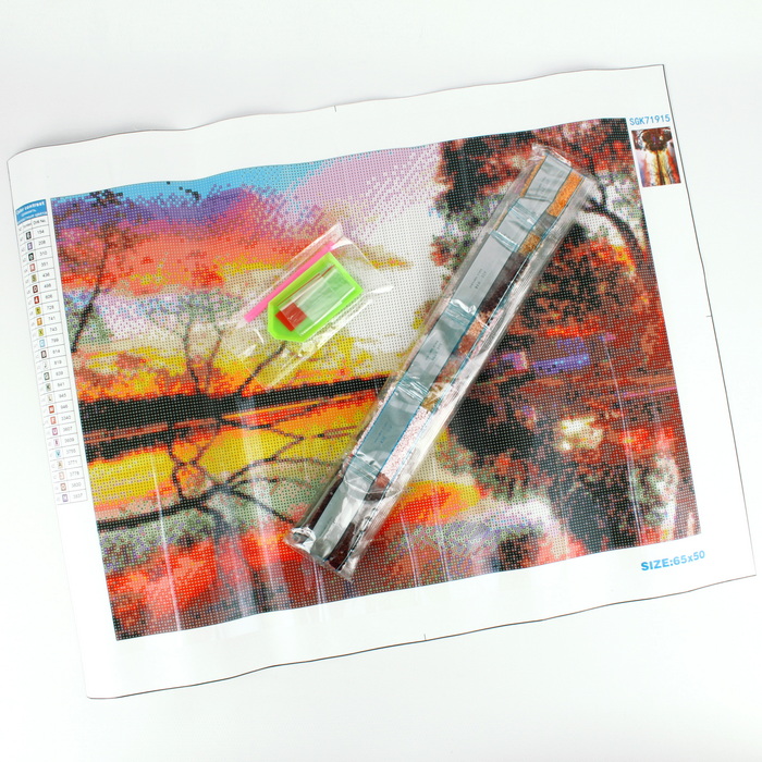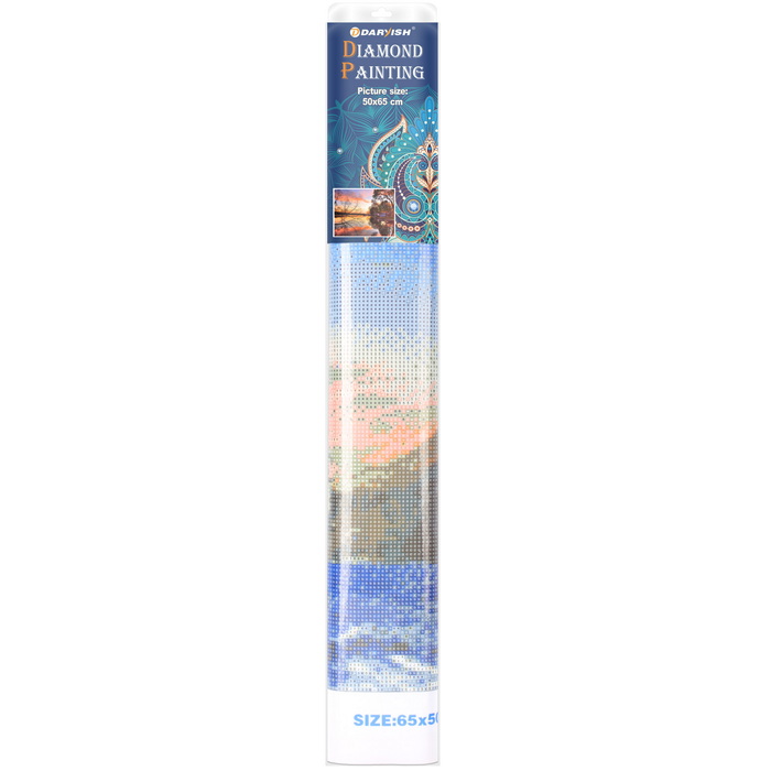 Алмазная живопись 50*65 см . В комплекте: холст 50*65 см с нанесённым рисунком и клеевым слоем с защитной плёнкой, комплект страз, пластиковая ручка, поддончик, силиконовый клей. Упаковка-блистер на европодвесе 8*50,5*4см.