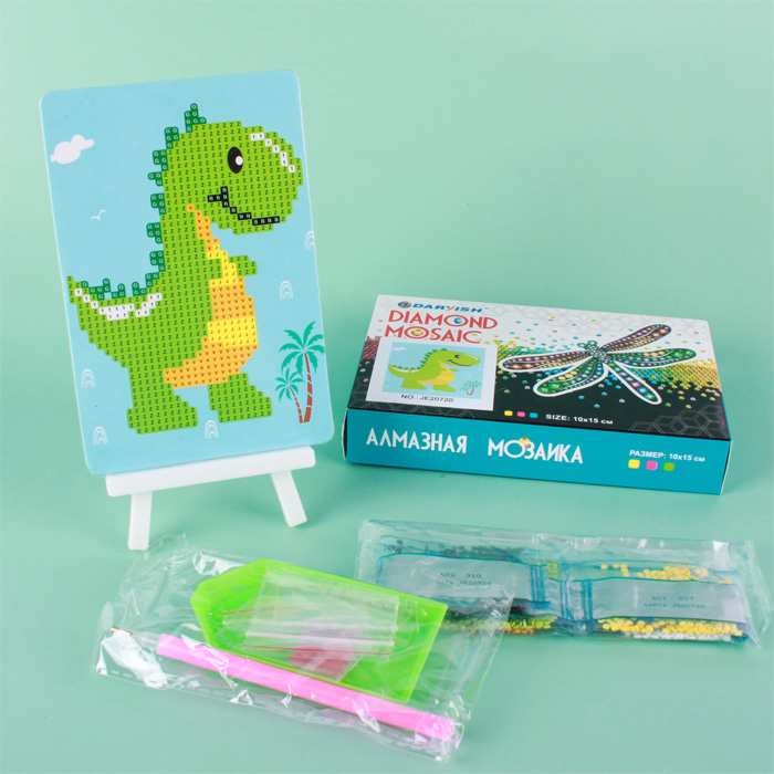 Для детей от 7-х лет и старше.ку с любимым героем мультфильма очень просто. Необходимо снять защитный слой с клеевой основы, и с помощью ручки приклеить стразы по номеру и цвету. Готовую картинку можно поставить на мольберт, который входит в набор. Блестящий результат восхищает всех деток. Алмазная мозаика станет отличным подарком для детей, поможет освоить ренку новый вид творчества и развить аккуратность, внимательность, усидчивость. Готовая картина украсит интерьер детской комнаты или станет отличным подарком для близкого человека. В комплекте: холст 10*15*0,2 см с нанесённым рисунком и клеевым слоем с защитной плёнкой, комплект разноцветных страз, карандаш-стилус, ёмкость для страз, пластинка клея, мольберт, пакетики. Материалы: пресованный картон, АБС-пластик, полипропилен, целлофан, клей. Упаковка: картонная коробка 16,5х10,5х3 см.