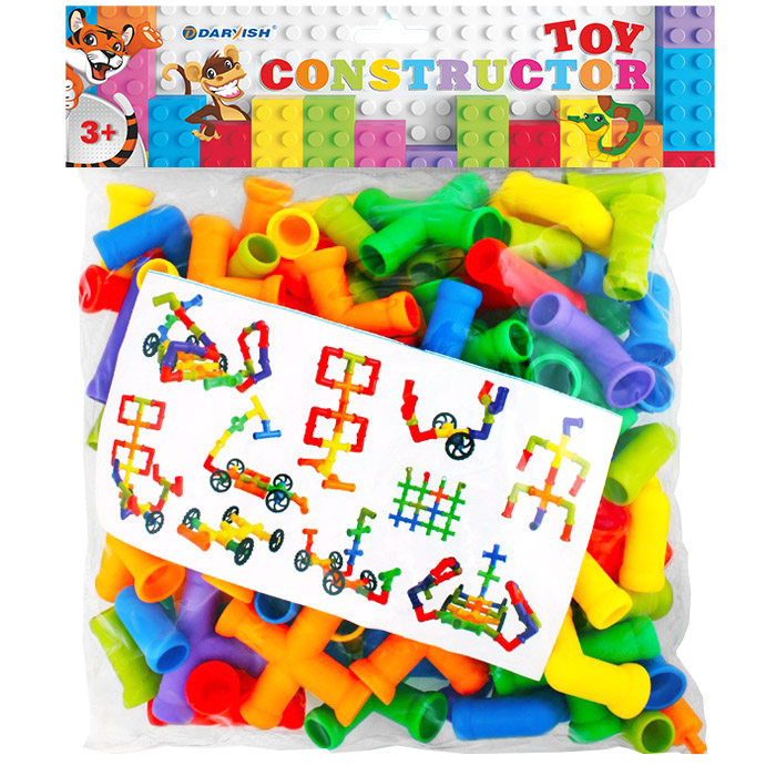 Для детей от 3-х лет и старше. Для игровых целей. Комплектность: 80 деталей в виде труб и 4 колеса.Диаметр колеса:5см.Диаметр труб:1,5см Развивает мелкую моторику, творческое мышление и пространственноне воображение, а также тренирует внимание и зрительную память. Есть вкладыш с примером собранных фигур.