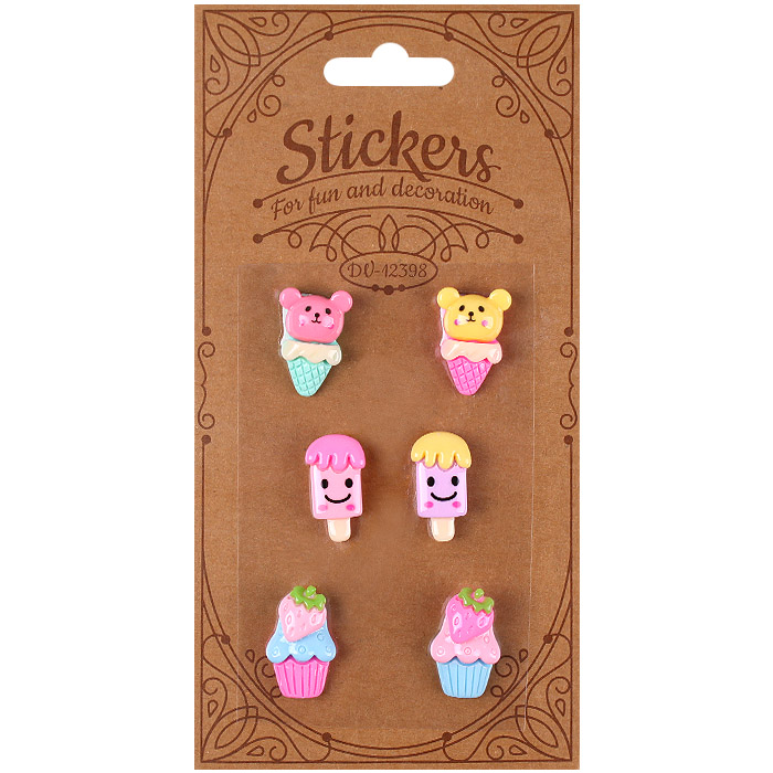 Наклейки в виде разнообразных пластмассовых фигурок. Европодвес - 16х8,5*0,5 см.