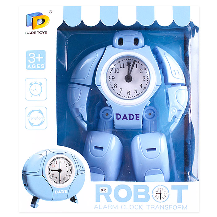 Трансформер Робот - часы. Выполняет функцию игрушки-Робота, который трансформируется в часики-будильник. Использовать батареи LR44*2шт( в комплект входят). Упаковка - картонная коробка 13*15*8 см.
