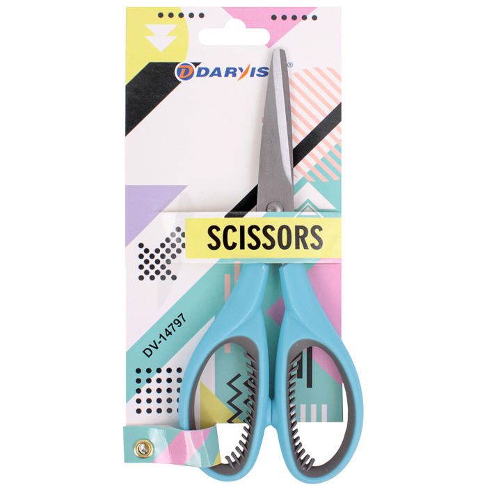 Ножницы канцелярские 17,5 см .Хорошо заточенные зауженные лезвия из нержавеющей стали. Пластиковые ручки с резиновыми вставками. Цвет:ассорти. С европодвесом.8,5*20*1,5см