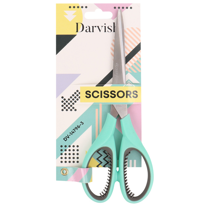Ножницы канцелярские 20см .Хорошо заточенные зауженные лезвия из нержавеющей стали. Пластиковые ручки с рельефными резиновыми вставками. Цвет ручек: зелёный. С европодвесом.9*20,5*1,5см