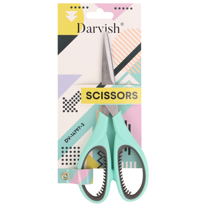 Ножницы канцелярские 17,5см .Хорошо заточенные зауженные лезвия из нержавеющей стали. Пластиковые ручки с рельефными резиновыми вставками. Цвет ручек: зелёный. С европодвесом.8,5*20*1,5см