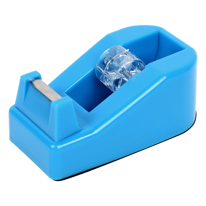 Диспенсер настольный для клейкой ленты (19мм), пластиковый корпус, снабжен стальным ножом, имеет нескользящее основание. Цвет:голубой. Удобен в использование в офисе и дома. Скотч в комплект не входит!!! Размер 10*5*4 см. Упаковка - картон.коробка 10,5*4,5*6 см.