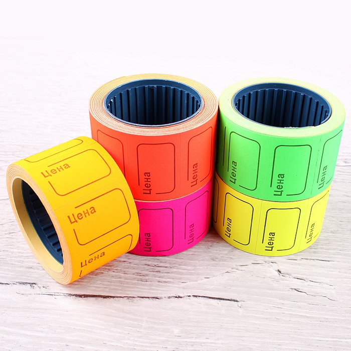 Ценник для этикет. пистолета. Цвет - ассорти. Примерное количество ценников в одном рулоне - 200 шт. Упаковка 5шт-плёнка.5,2*15*5,2см