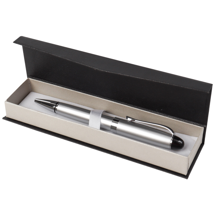 Ручка подарочная корпус серебристый в футляре. Ручка с поворотным механизмом. Стержень объёмный метал. 98мм. Упаковка: картон. Размер :17,5*2,3*4,5см