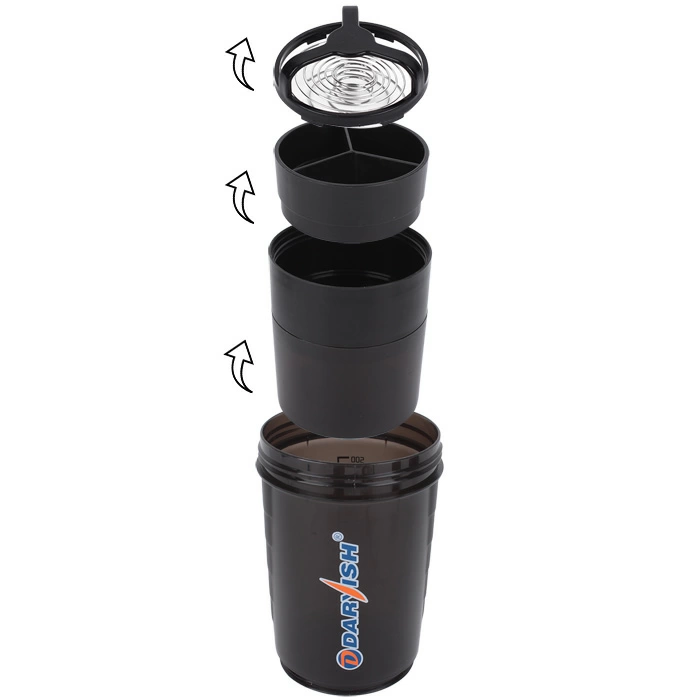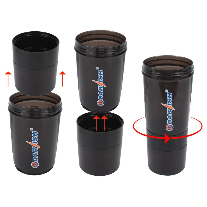 Шейкер – идеальное решение для приготовления и хранения коктелей, в том числе протеиновых. Вместимость стакана составляет 500 мл, есть три контейнера - основной для смешивания и два для хранения ингредиентов, в том числе для хранения пищевых добавок в виде капсул или таблеток (с тремя отсеками). Специальное спиральное металлическое ситечко равномерно размешивает любой даже самый густой протеин или гейнер и вы получаете свой спортивный коктейль без надоевших комочков. Имеется 4 цветовых вариантов — крышки различных цветов. Упаковка - п/э пакет.