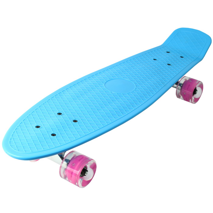 Размер доски: 67*18см. Диаметр колёс: 5,8 см. Материал: полиуретан, металл, пластмасса, Рекомендуемый вес: до 75 кг. Колеса с подсветкой. Упаковка: п/э пакет.