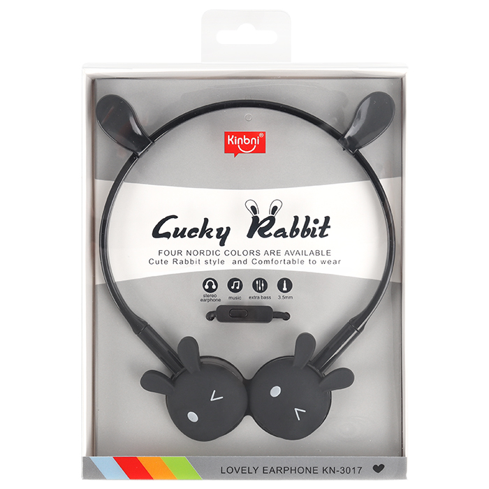 Наушники-зайчики проводные накладные черные. Тип: проводные. Длина провода 120см, микрофон, разъем 3.5мм. Предназначены для прослушивания музыки. Упаковка: пластиковая коробка с европодвесом 15*22*3см