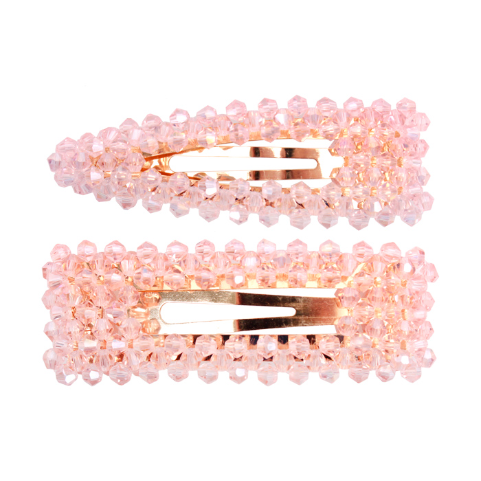 Заколка для волос 2 шт в наборе клик-клак с бусинками " хрусталь" розовая