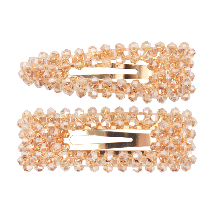 Заколка для волос 2 шт в наборе клик-клак с бусинками "хрусталь" золотистая