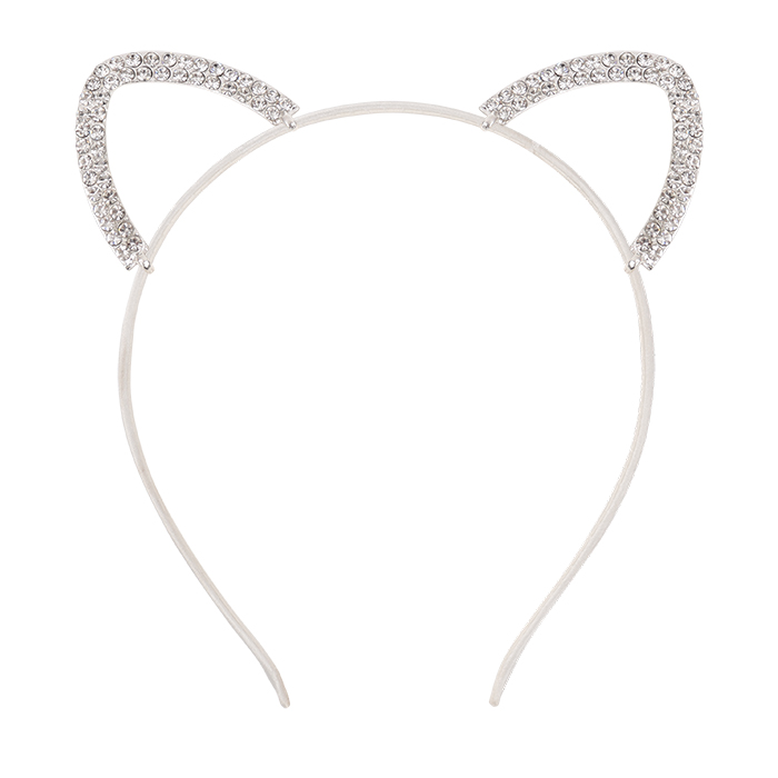 Использовать аксессуар для украшения и закрепления причёски. Подходит для карнавального и праздничного образа. Ободок металлический, декорирован бежевой тканью и на него прикреплены ушки в стразах. Размер 12*14см. Упаковка - блистер 14*16*5,5см.