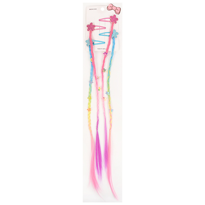 Заколка "Клик-клак" с цветочкоми и цветными косичками.Использовать аксессуар для украшения и закрепления причёски. Цвет: ассорти. Упаковка: пакет с европодвесом 9,5*49*0,5см