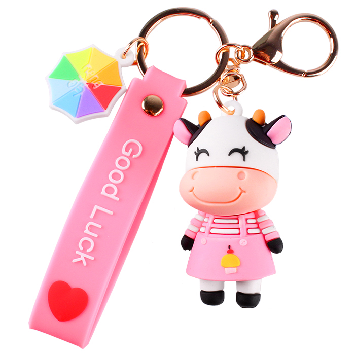 Брелок "Бычок" розовый (5,5*3см ) с карабином и силиконовым ремешком с надписью"GoodLuck" и насадками. Упаковка - п/э.
