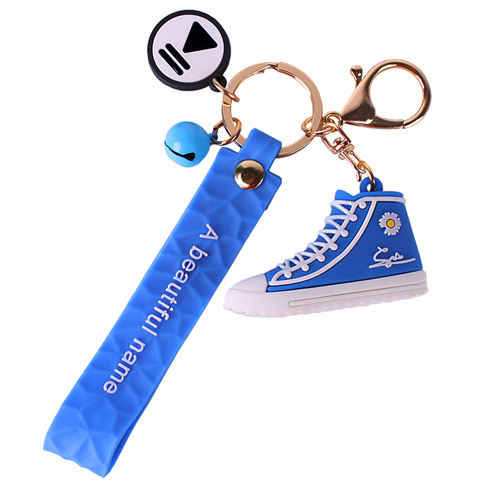 Брелок "Кед" (6*2см ) с карабином и силиконовым ремешком с надписью"A beautiful name" и насадками. Ассорти цвет (желтый, розовый, синий, красный). Упаковка - п/э.