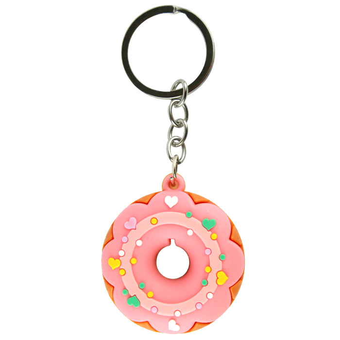 Брелок для ключей "Донат" цвета в ассортименте. Существует всего несколько вещей, без которых действительно нельзя выходить из дома. Например, связка ключей. Очень полезным приобретением будет брелок, который поможет не потерять их или не перепутать с чужими, а также просто подчеркнет индивидуальность своего владельца. Размер: 10,5х4,5х1,5 см. Ассорти 4 вида.Изготовлен из: полимерных материалов, силикона, элементов из металла. Размер упаковки с европодвесом: 6*8*1,5см.