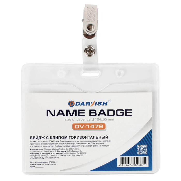 Бейдж с клипом горизонтальный 104*65мм "Darvish"