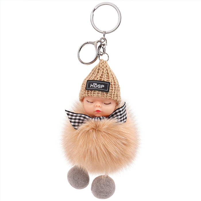 Брелок "Девочка" 3*11*2,5см спящая , мех + вязанная шапочка, висячие "ножки-помпон" . Карабин + кольцо. Упаковка mix цвет 12 шт п/э