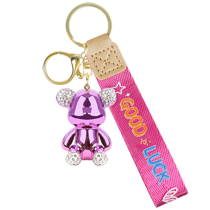Брелок "Мишка" инкрустированны стразами лапки и ушки. 3,5*5,5*3см. Ассорти. Изготовлен из полимерных материалов с элементами из металла. Дополнительно на кольце ремешок с принтом и карабин.