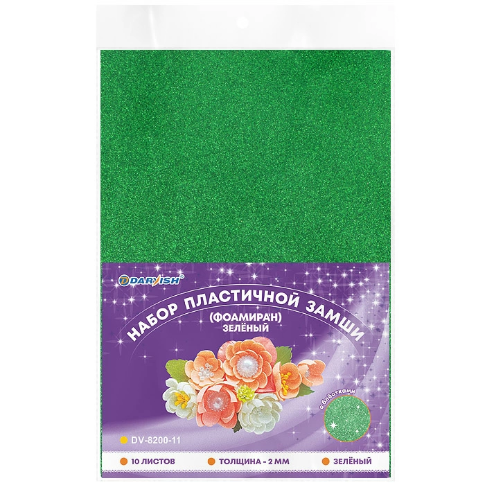 Набор пластичной замши с блёстками зелёная А4 10л (фоамиран)
