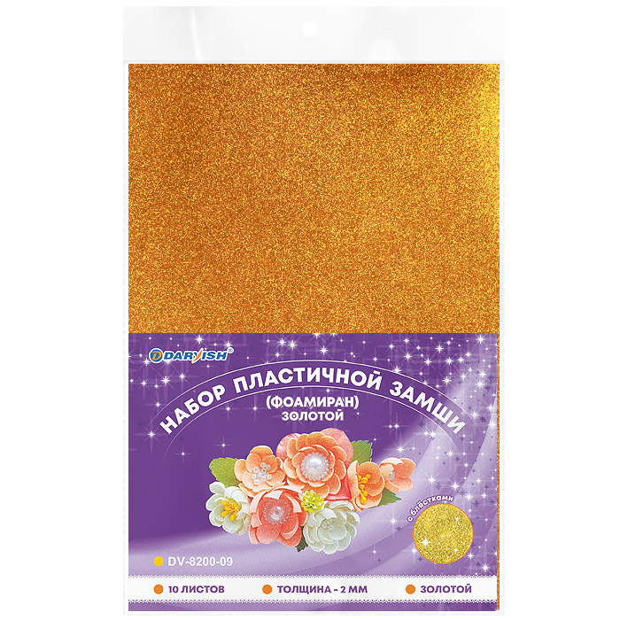 Пластичная замша (или фоамиран) - синтетический материал с пористой и бархатистой структурой. Пластичный и лёгкий в работе материал для создания и декорирования цветов, игрушек, открыток, альбомов, фоторамок, подарочной упаковки и реализации любых творческих идей. В набор входят: 10 листов толщиной 2 мм. Размер листов: А4 (210х297 мм). Упаковка: п/э пакет с европодвесом.