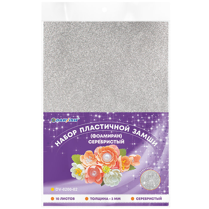 Набор пластичной замши с блёстками серебристая А4 10л (фоамиран).