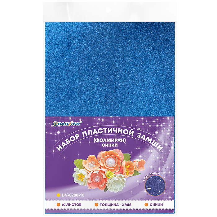 Пластичная замша (или фоамиран) - синтетический материал с пористой и бархатистой структурой. Пластичный и лёгкий в работе материал для создания и декорирования цветов, игрушек, открыток, альбомов, фоторамок, подарочной упаковки и реализации любых творческих идей. В набор входят: 10 листов толщиной 2 мм. Размер листов: А4 (210х297 мм). Упаковка: п/э пакет с европодвесом.