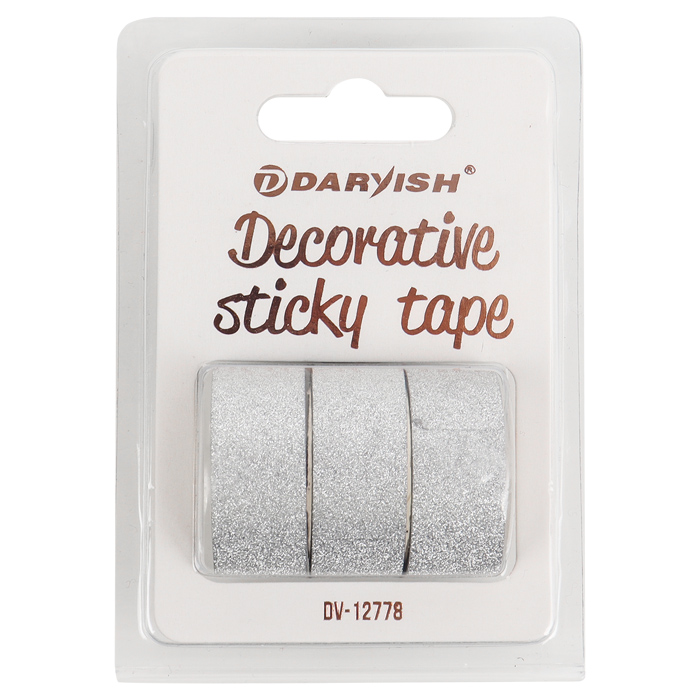 Лента декоративная липкая 3шт/уп 15мм*3м "Darvish" блёстки серебро