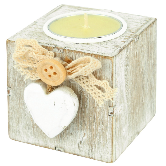 Свеча "шайба" в деревянном кубе с декором "Сердечко" ассорти