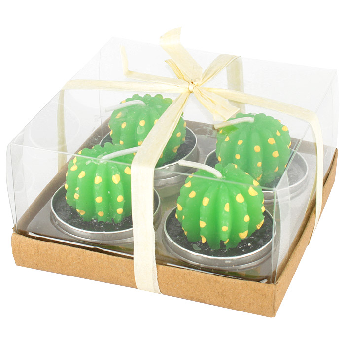 Свечи "Кактус" 4шт/уп в наборе. Ассорти. Размер упаковки: 9см * 9см * 5см