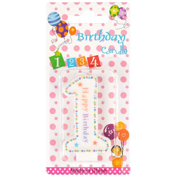 Свеча для кондитерских изделий "Цифра 1" ( *6см). Упаковка - блистер на картонной подложке 6,8*13,7*1см.