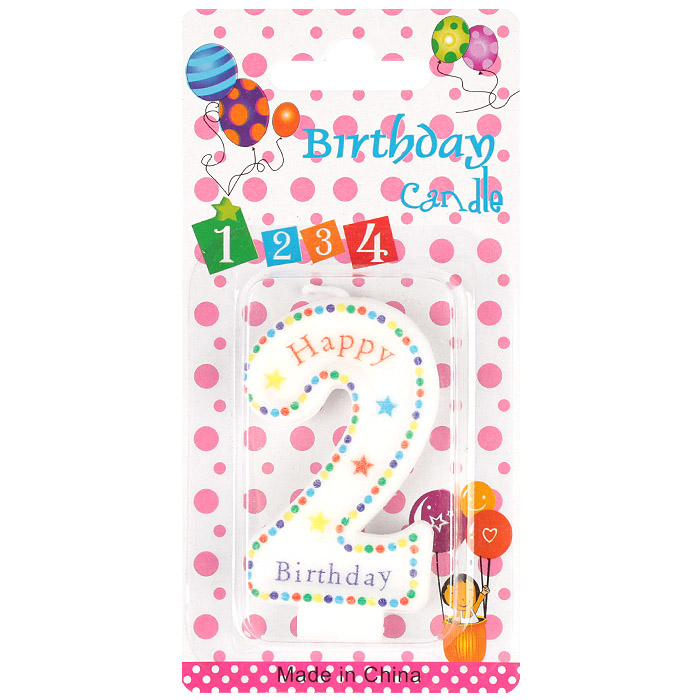Свеча для кондитерских изделий "Цифра 2" ( 4*6см). Размер упаковки 6,8*13,7см, европодвес
