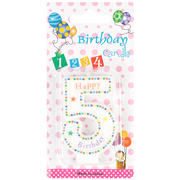 Свеча для кондитерских изделий "Цифра 5" ( 4*6см). Размер упаковки 6,8*13,7см, европодвес