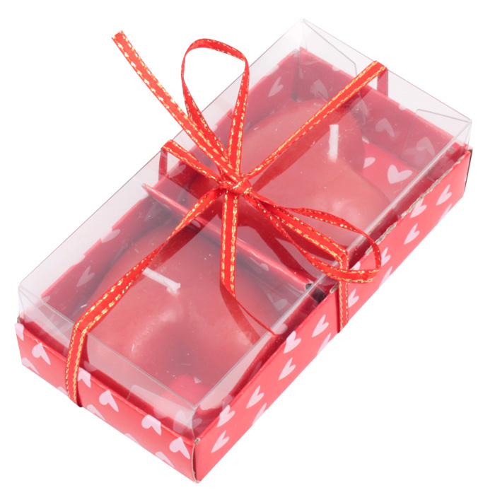 "Сердце" свечи в наборе 2 шт. Размер свечи 5*5см. Упаковка- коробка картонная с прозрачной крышкой 11*5,5*3см
