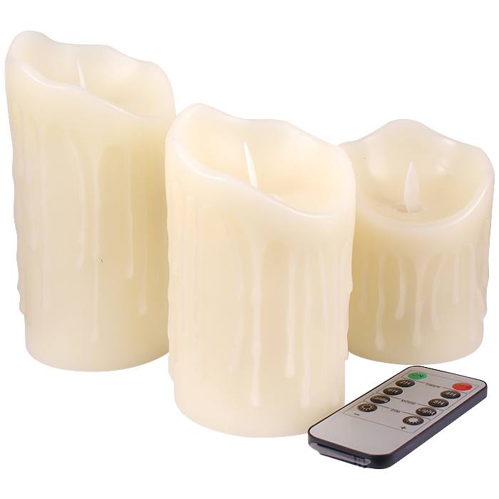 Свеча Led декор. парафиновая набор 3 шт. (+пульт)